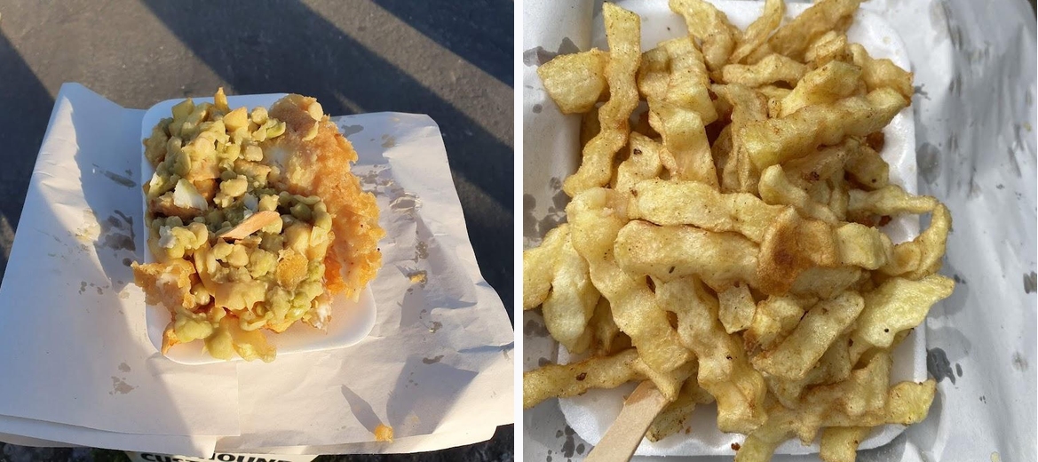 I had chips battered sausage and curry sause fantastic tasting and is in my personal top 5 fish and chip shops. Polite and friendly staff and very quick service, Proper Derbyshire folk 👍👍